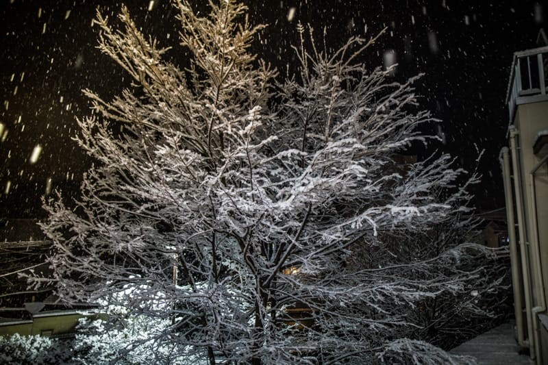 It started snowing during the party.